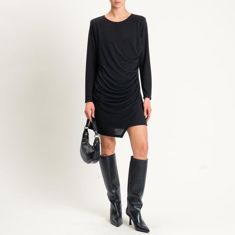 Tensione in-Abito corto in maglina elasticizzata con drappeggio - nero