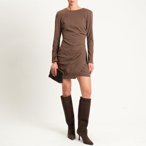 Tensione in- Abito corto scuba crepe con arricciatura laterale - moro