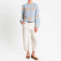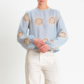 Tensione in-Blusa ricamata bottone dietro - cielo/burro