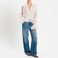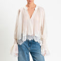 Tensione in-Blusa scollo v tessuto goffrato con pizzo - panna