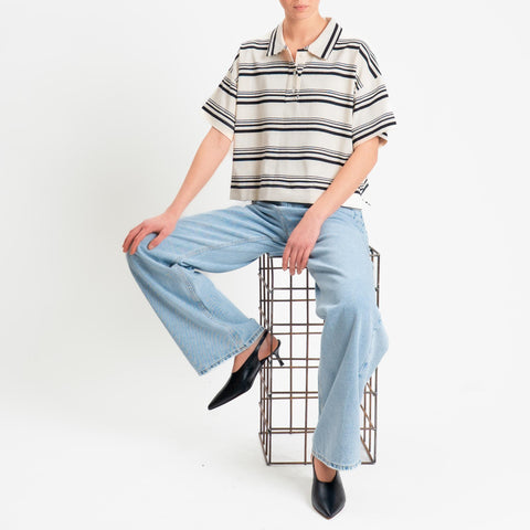 Vicolo-T-shirt a righe collo polo - burro/nero