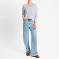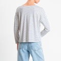 Zeroassoluto-T-shirt scatola a righe scollo v in jersey elasticizzato - panna/jeans