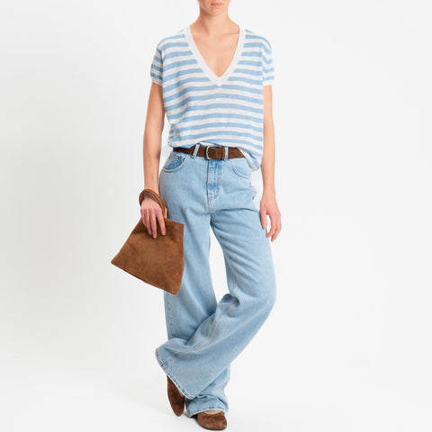 Zeroassoluto-Maglia scollo v a righe garza di viscosa - celeste/bianco