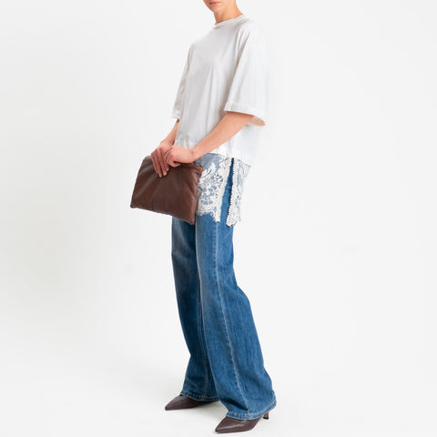 Tensione in-T-shirt doppio tessuto con pizzo - bianco/burro