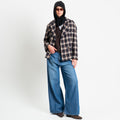 Tensione in-Giacca check misto lana con balaclava - blu/moro/beige/nero