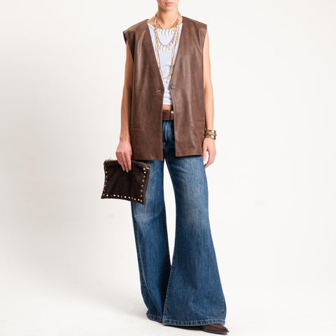 Tensione in- Gilet over similpelle invecchiata - moro