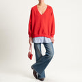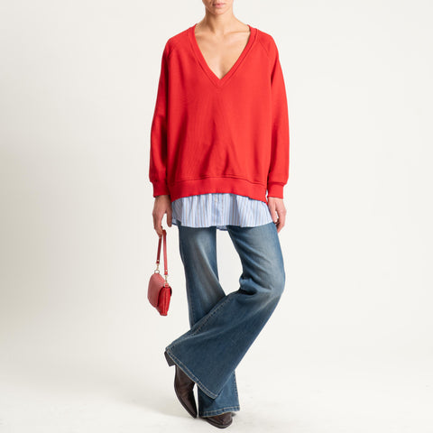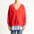 Tensione in-Felpa scollo v doppio tessuto - rosso/celeste