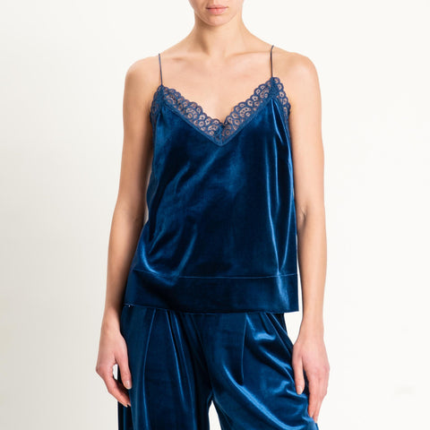 Tensione in-Top velluto ciniglia con pizzo - blu