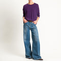 Zeroassoluto- T-shirt a righe scatola in jersey - blu/vino
