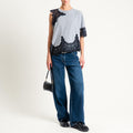 Tensione in-T-shirt asimmetrica con pizzo - grigio/nero