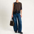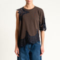 Tensione in-T-shirt asimmetrica con pizzo - moro/nero