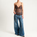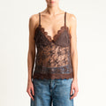 Tensione in-Top doppio scollo v in pizzo - moro