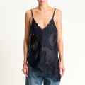 Tensione in- Top asimmetrico satin con pizzo - nero/nero