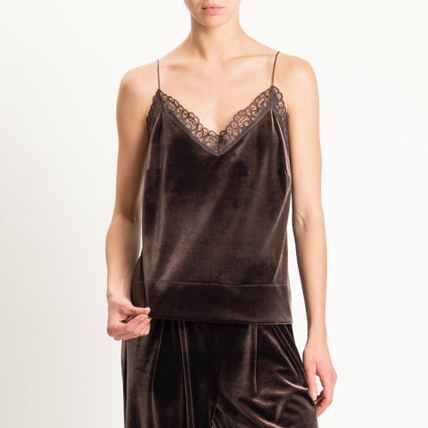 Tensione in-Top velluto ciniglia con pizzo - moro