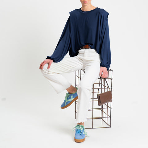 Tensione in-T-shirt in jersey di viscosa elasticizzato con spalline - blu