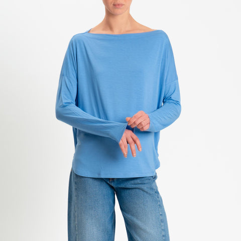 Kontatto- T-shirt scollo barca stondata in jersey - denim