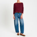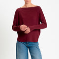 Kontatto- T-shirt scollo barca stondata in jersey - vino