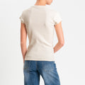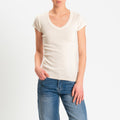 Zeroassoluto- T-shirt a costine scollo v cotone elasticizzato - burro