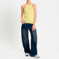 Zeroassoluto- Top a costine scollo halter cotone elasticizzato - yellow