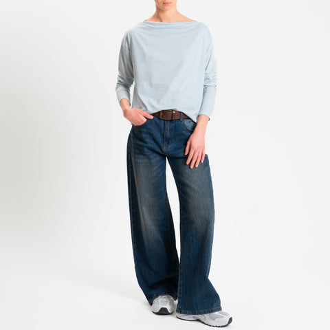 Zeroassoluto-T-shirt CLOE righe in jersey elasticizzato - celeste/latte
