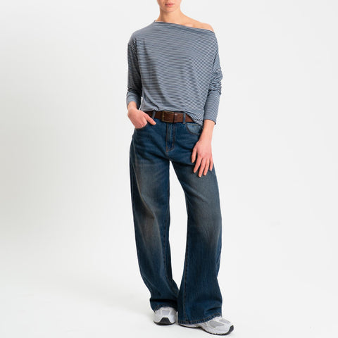 Zeroassoluto-T-shirt CLOE righe in jersey elasticizzato - moro/celeste