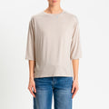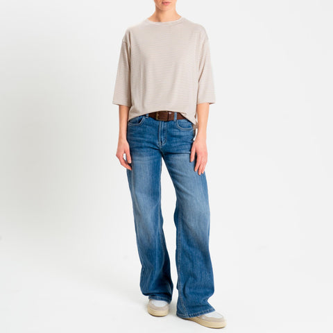 Zeroassoluto-T-shirt CLARY righe in jersey girocollo manica 3/4 - beige/latte