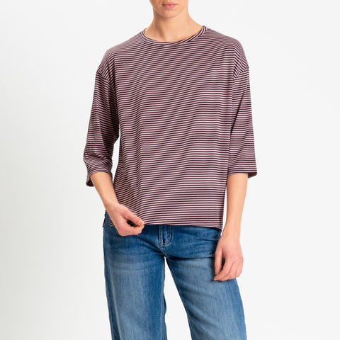 Zeroassoluto-T-shirt CLARY righe in jersey girocollo manica 3/4 - moro/rosa