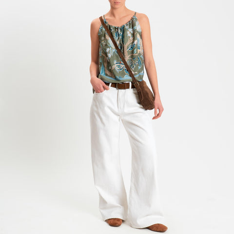 Wu'side-Top fantasia floreale con coulisse - salvia/beige/azzurro