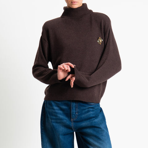 Tensione in-Maglia scatola collo alto misto cashmere con spalline - cioccolato
