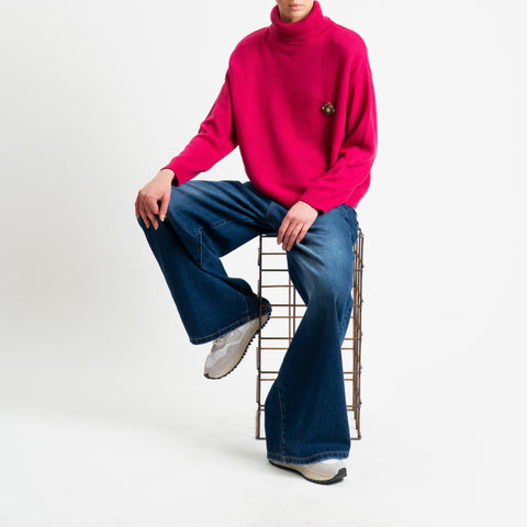 Tensione in-Maglia scatola collo alto misto cashmere con spalline - fucsia