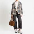Tensione in-Giacca quadri doppiopetto misto alpaca - panna/beige/nero
