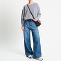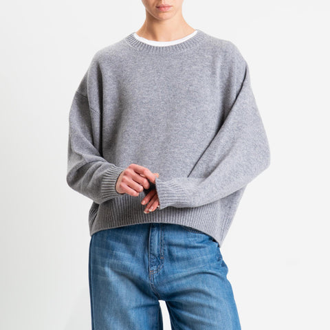 Tensione in-Maglia girocollo bordi a coste 100% LANA - grigio