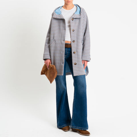 Zeroassoluto-Cappotto pied de poule neoprene - celeste/cuoio/burro