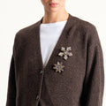 Tensione in-Cardigan misto LANA/SETA melange con spille - cioccolato