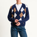 Tensione in-Cardigan rombi misto cashmere - blu/cuoio/latte