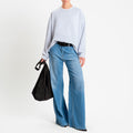 Felpa a scatola con manica lunga caratterizzata da una silhouette morbida e realizzata in cotone soffice garzato all’interno, confortevole a contatto con la pelle. Modello con spacchi laterali e lunghezza più corta sul davanti per un dettaglio dinamico. Trattata con la tecnica dello stone wash che garantisce un aspetto di pregio, comfort elevato e maggior morbidezza.