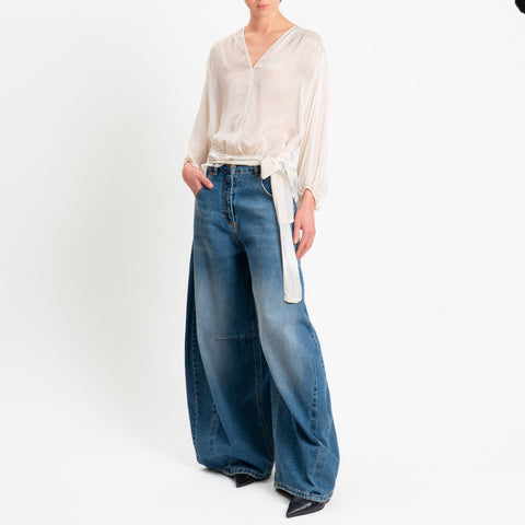 Haveone-Blusa mussola con fusciacca misto seta - burro