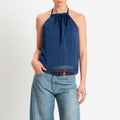 Haveone-Top misto seta spacco dietro - blu