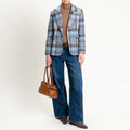 Tensione in-Giacca principe di galles misto lana - celeste/latte/cuoio