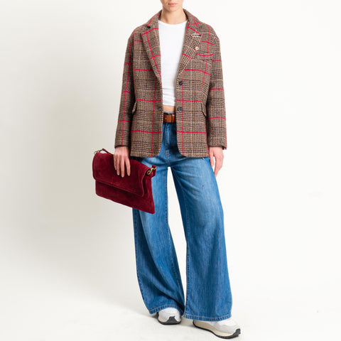 Tensione in-Giacca quadri misto lana spacchi laterali - moro/fucsia