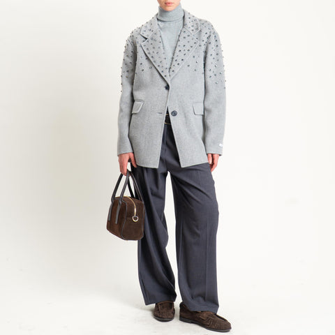 Haveone-Giacca cappotto hand made con applicazioni - grigio chiaro