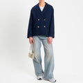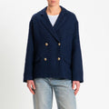 Tensione in-Giacca bouclè con bottoni dorati - blu