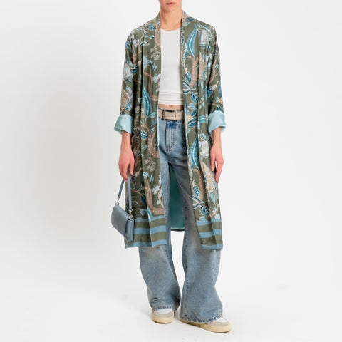 Wu'side-Kimono lungo fantasia floreale - salvia/beige/azzurro