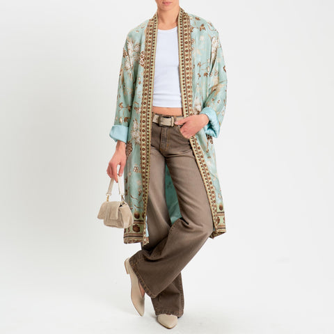 Wu'side-Kimono lungo fantasia - menta/cioccolato
