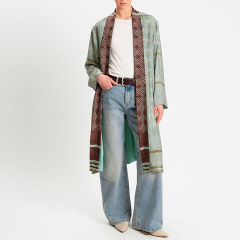 Wu'side-Kimono lungo fantasia etnica - verde/cioccolato