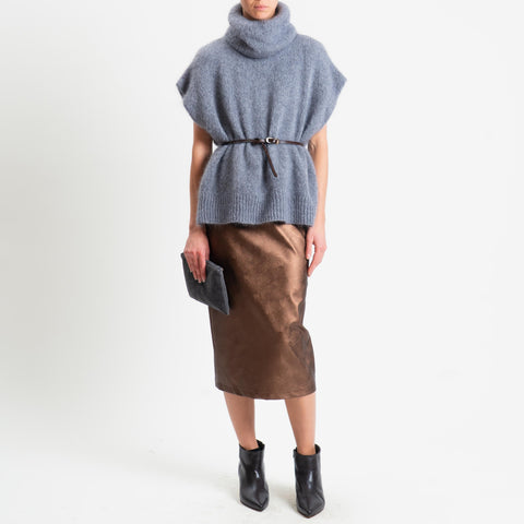 Motel-Gonna similpelle lamianta spacco dietro - bronzo