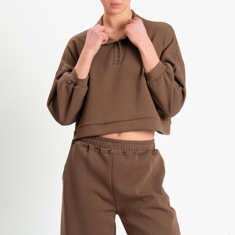 Haveone-Felpa collo polo - cioccolato
