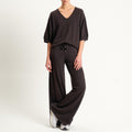 Kontatto-Maglia scollo v con micro paillettes - moro