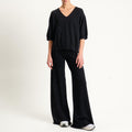 Kontatto-Maglia scollo v con micro paillettes - nero
