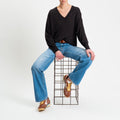 Tensione in-Maglia scollo v 100% LANA MERINO - cioccolato